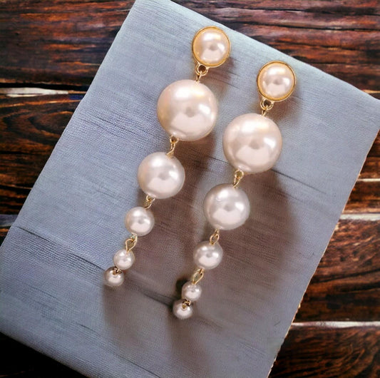 Elegant Long Gold Plated Pearl Dropping Earrings