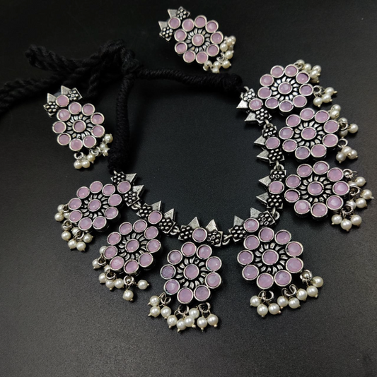 Ethnic Oxidised Stone Choker Set