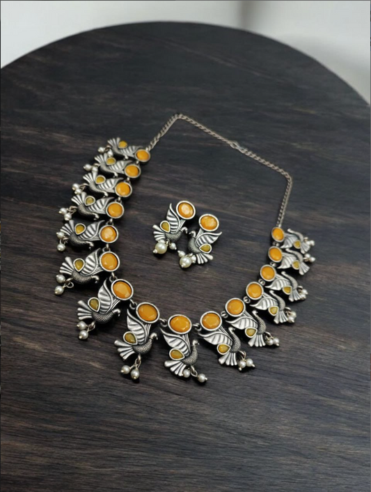 Oxidised Bird Design Choker Necklace Set | Traditional Jaipur Jewellery