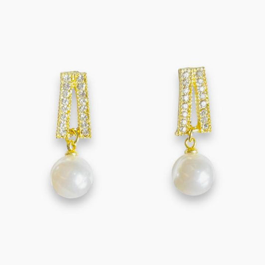 Gold Plated "A"-shaped Pearl Drop Earrings