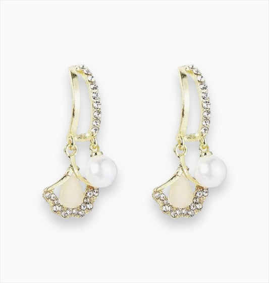 Elegant Long Gold Plated Pearl Dropping Earrings