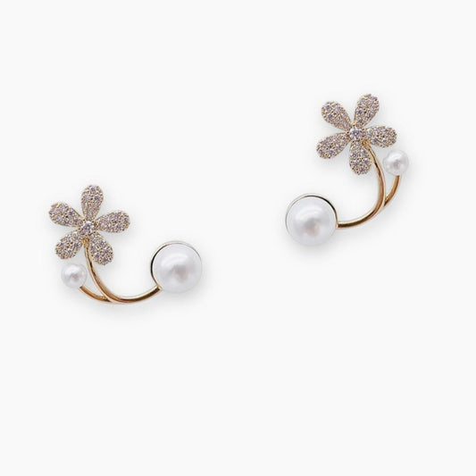 Gold Plated Crystal Flower with Crystal Pearl Ear Jackets