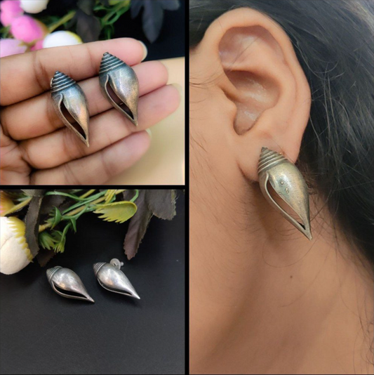 Shankh Oxidised Stud Earrings – Perfect for Daily Wear