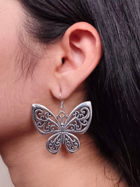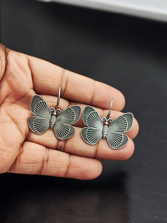 Butterfly German Silver Simple Hook Earrings for Office Wear