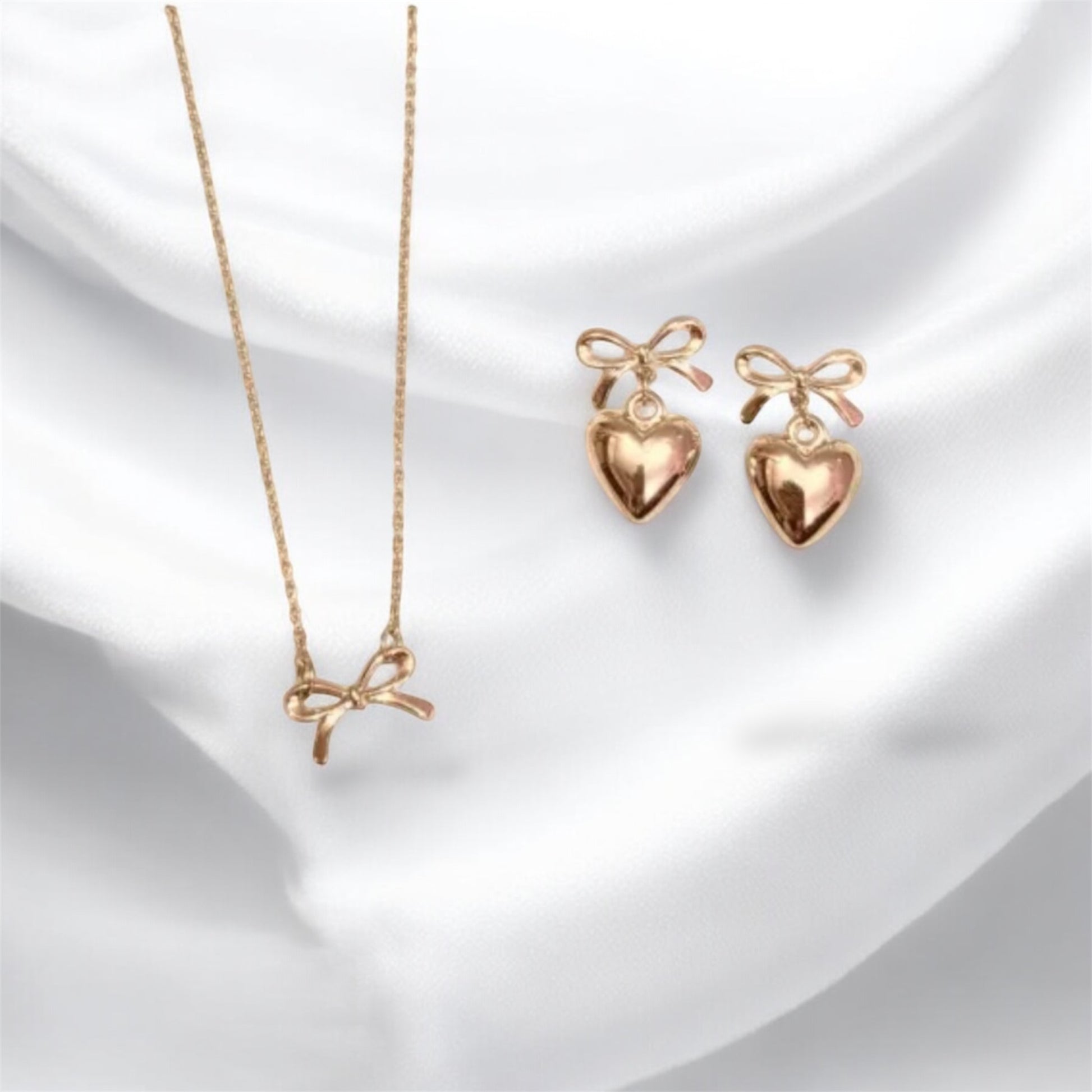 Elegant Bow Love Pendant Set. Perfect for Valentine's Day, this set features a delicate clover pendant that symbolizes love and luck. Treat yourself or a loved one to this stunning and timeless piece.